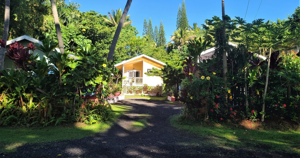 In this update I will share a few photos of the ‘cottage’ I am renting.  It is basically a little manufactured home on stilts.  At $130 per night, not only is it cheaper than almost all hotel rooms in Hawaii, but there is no ‘resort fees’, cleaning fees, or other crazy fees.  In many Hawaiian hotels the fees often are as much as the room charge.  The bonus is the cottage is 100 yards from the beach!  It is quite nice, with one bedroom, a nice bathroom, living room and kitchen.  There is no air conditioning, but the cool sea breezes almost made it too cool.   The only down side was there were two or three types of tree frogs in the lush tropical  jungle around the cottage, that thought serenading me, or their proposed mates, would be a good idea.   They did make it hard to sleep, but oh well.